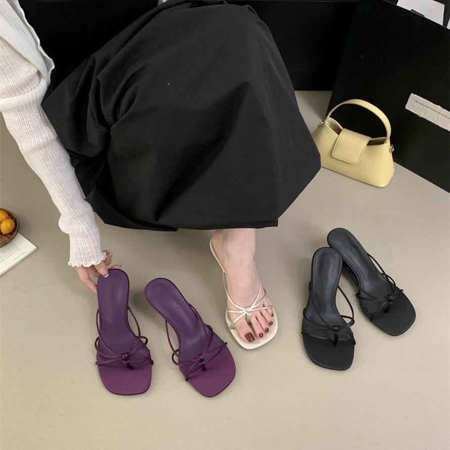 French temperament thin heel cool slippers fairy shoes 2025 new summer fashion black high heel sandals