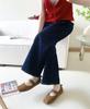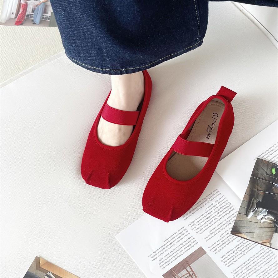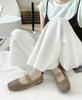 Leather single shoes women's shoes flat 2025 new retro soft-soled grandma shoes one-word elastic band square head Mary Jane shoes