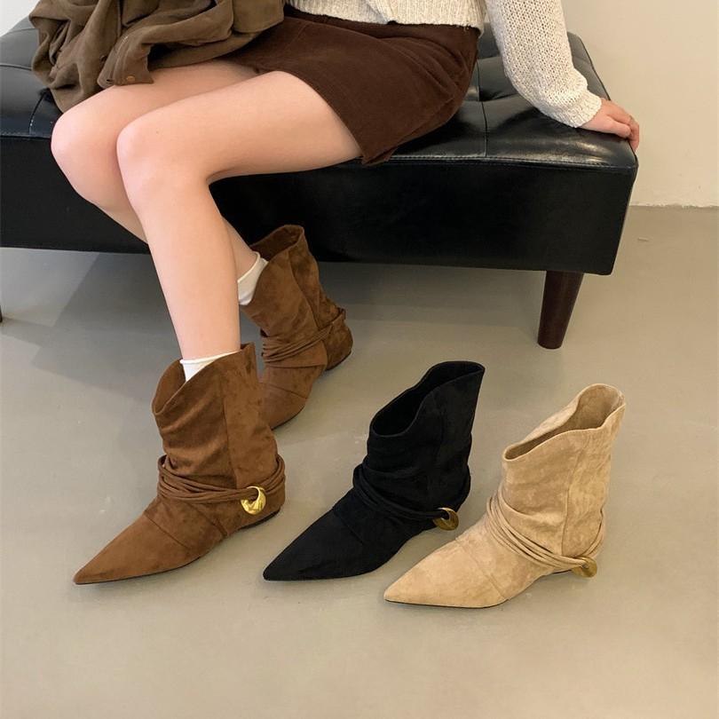 Niche cat and western boots women's folding and piling boots autumn and winter new fashion temperament versatile short boots