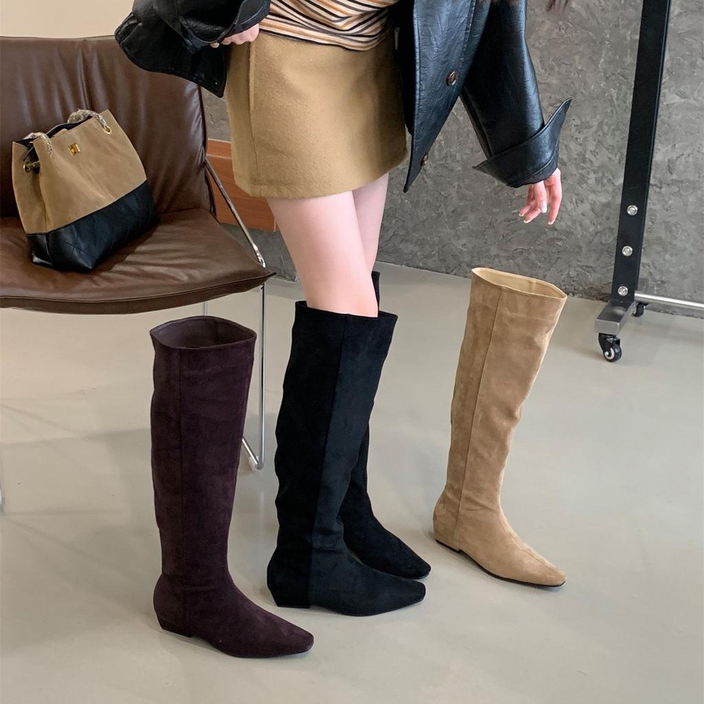 2025 autumn and winter new fashionable versatile inner height increase pointed head thin medium tube boots women's shoes long tube straight ride
