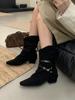 Retro thick heel two wear square head knight boots women's 2025 autumn and winter new suede belt buckle versatile and thin medium boots