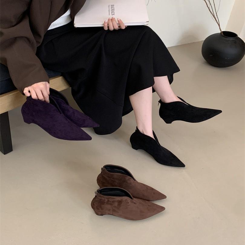 2025 autumn and winter new suede Korean version thick heel Martin boots rear zipper pointed versatile short boots women's Martin boots