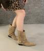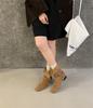 French fashionable design belt buckle thick heel thin boots women's autumn and winter outer wear commuting versatile one-pedal short boots