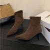 European and American sweet and spicy simple commuter short boots women's 2025 autumn and winter new suede pointed rear zipper high-heeled fashion
