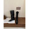 White trouser boots 2025 new Internet celebrity fat mm pointed wedge heel high tube but knee boots women