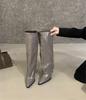 Grey patent leather pointed-tipped pleated boots female hottie style fine heel high tube but knee high heel knight boots