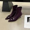 2025 autumn and winter new pointed thin heel short boots European and American fashion high heel thin boots rhinestone versatile short fashion boots