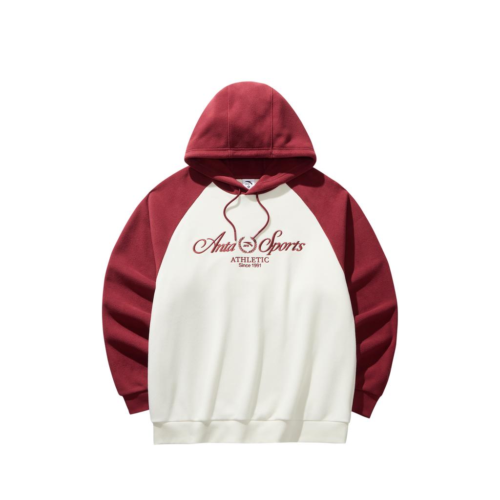 Anta Lifestyle Series Pullover Hoodie Color Block Sweatshirt Men hoodies Ivory 952548704-2