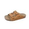 Large size one-word slippers women's new retro belt buckle beach flat-bottomed cool slippers