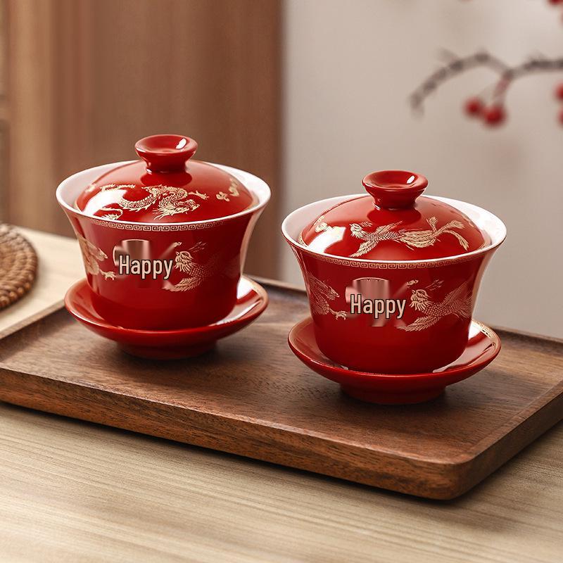 Red Wedding Tea Cups & Chopstick Set: A Perfect Bowl Set for Tea Toasting and Dowry.