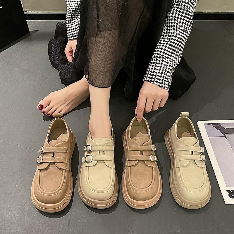 Platform women's autumn new British college style small leather shoes retro one-pedal Boken single shoes women