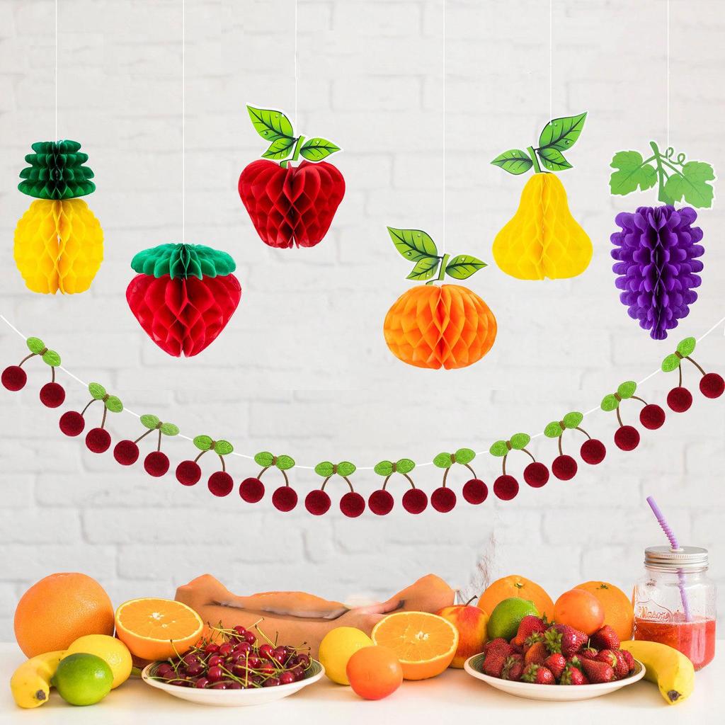 Spring Tropical Fruit Party Ceiling Decorations: Pineapple, Strawberry, Apple, and Grape Honeycomb Balls