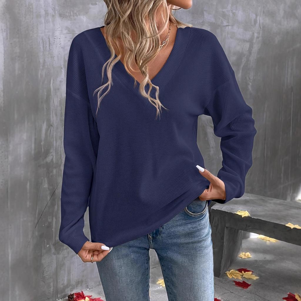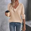Nové podzimní dámské oblečení Jednobarevné módní tričko s dlouhým rukávem a výstřihem do V