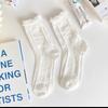 White Mid-calf Socks for Women in Autumn and Winter, Lace Cotton Pile Socks, Trendy Cotton, Sweat-absorbing