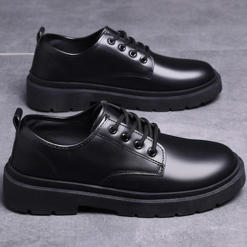 Men's shoes 2025 new autumn British style black casual leather shoes men's business dress big head work Martin boots