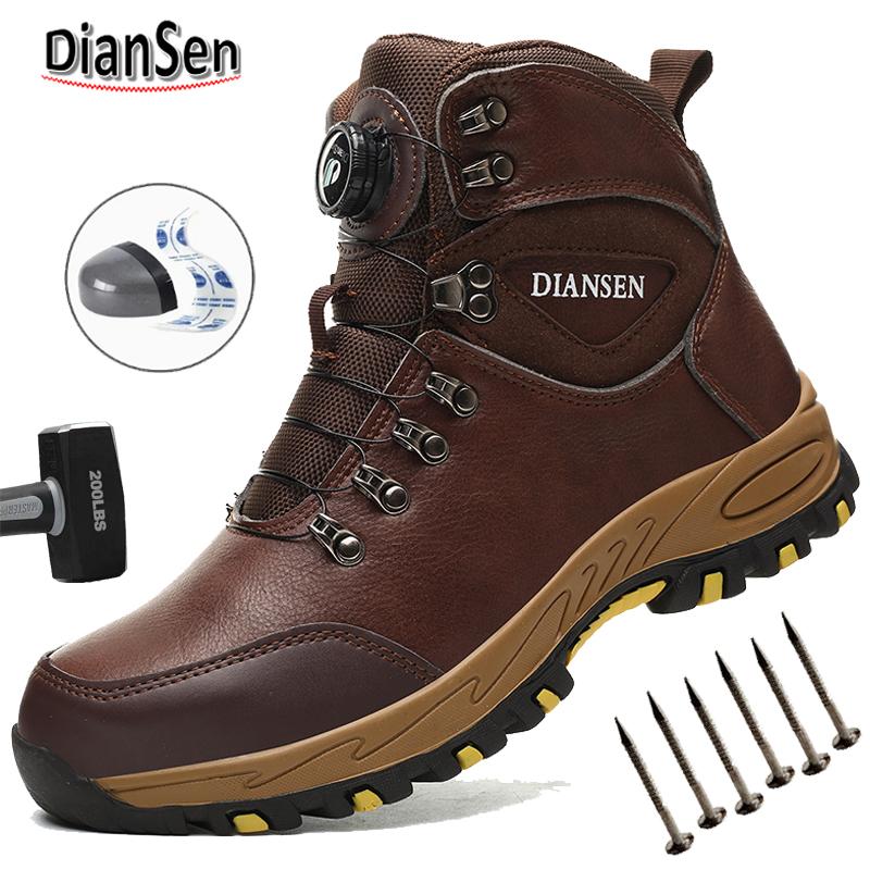 Men's High Top Steel Toe Work Boots Puncture Proof Anti-skid Safety Boots With Rotary Button Durable Rubber Sole Industrial Shoe