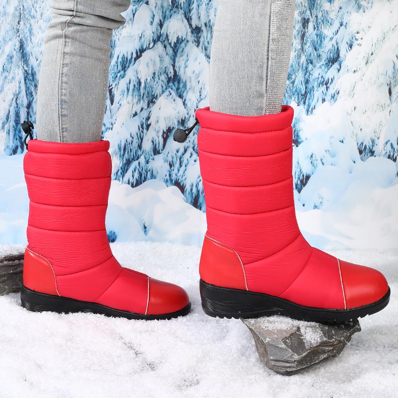 Podzimní Zimní Péřové Boty pro Ženy Vodotěsné Teplé Platforma Silná Podrážka Módní Středního věku Studenti Středně vysoké Krátké Bavlněné Boty