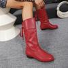 Shoes For Women Spring Knee High Boots Red Black White Tall Boots Woman Pleated Low Heel Casual Leather Female Long Shoes