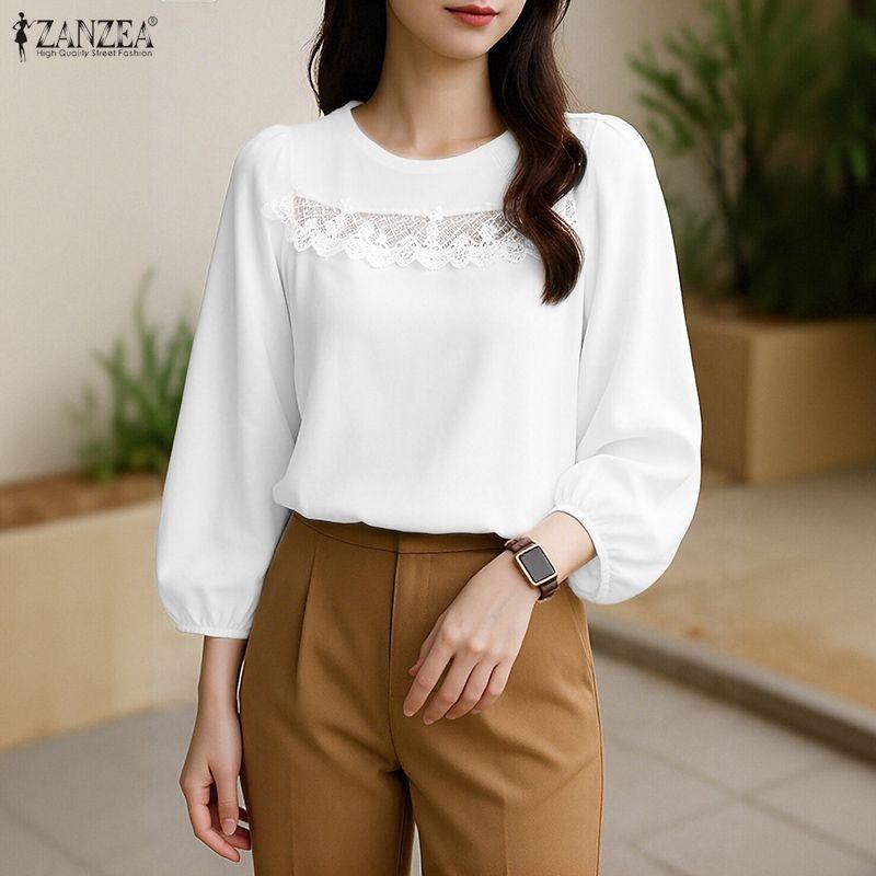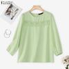 ZANZEA Women Casual V-Neck Long Sleeve Lace Patchwork Solid Color Loose Blouse