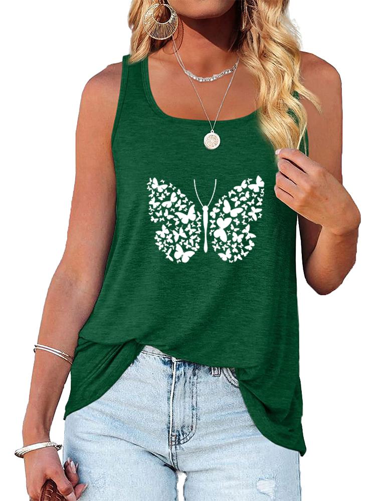 Women Fashion Print Sleeveless Top Summer Casual Round Collar T-shirt Pullover Loose Ladies Tank Top