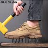 Oulylan Male Non Skid Safety Shoes Puncture-proof Lace Up Work Boots Steel Toe Anti-smash Sneakers Male Cowhide Labor Footwear