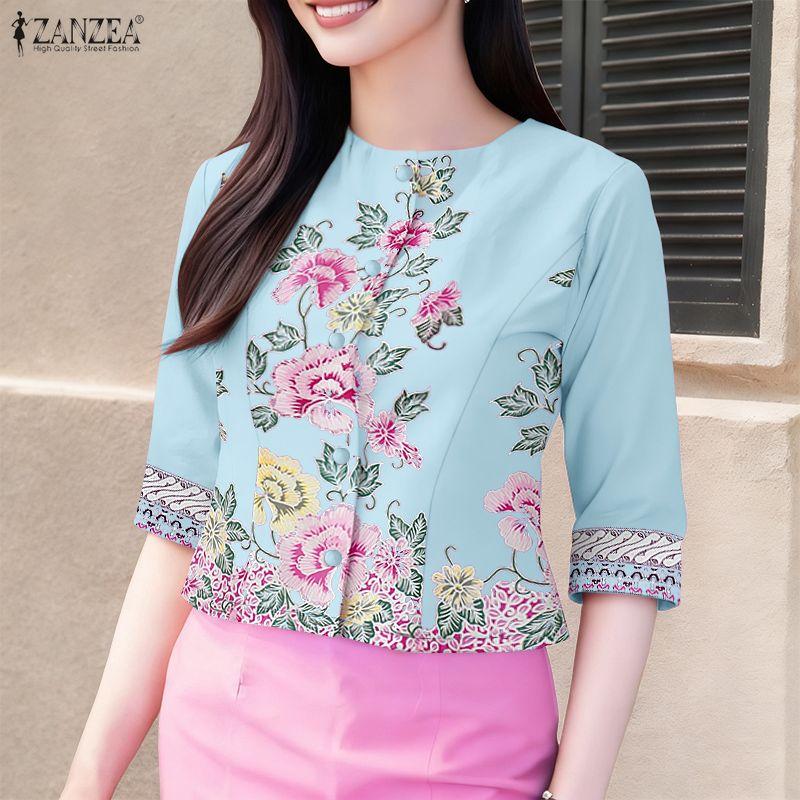ZANZEA Women Round Neck 3/4 Sleeve Floral Print Casual Blouse