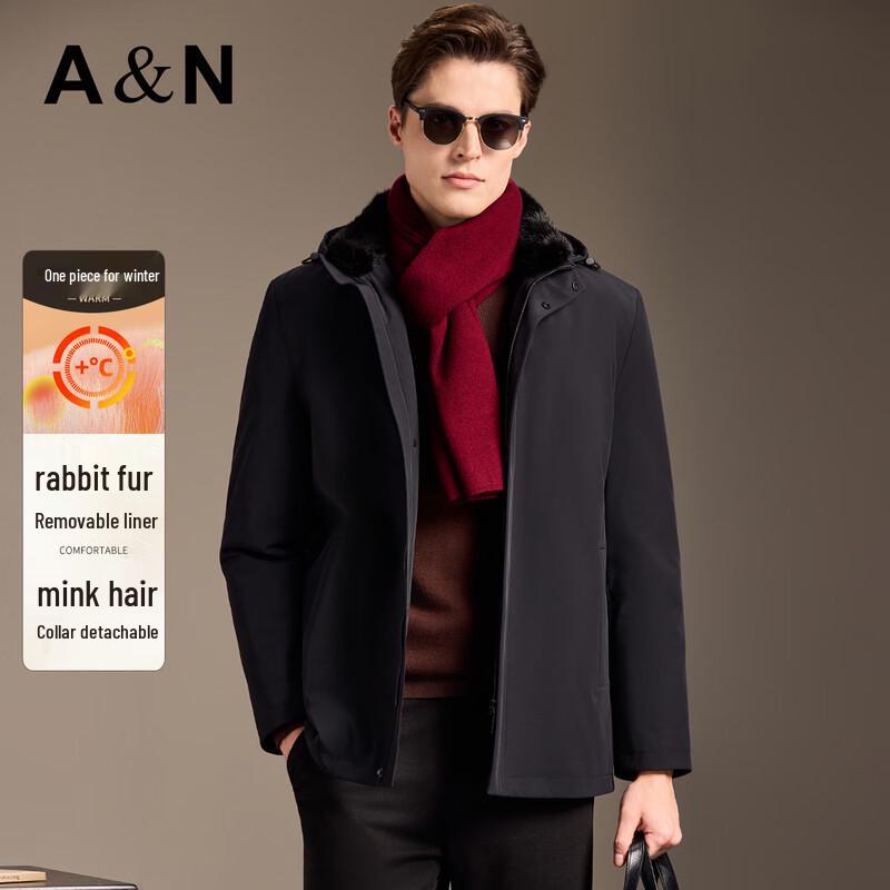 Antonio Men's Removable Rabbit Fur Lined Parka with Mink Fur Collar