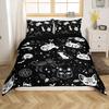 Black Cat Duvet Cover Set Gradient Line Cute Animal Bedding Set with Pillowcase Teens Kids Adults Room Decor Queen Duvet Covers