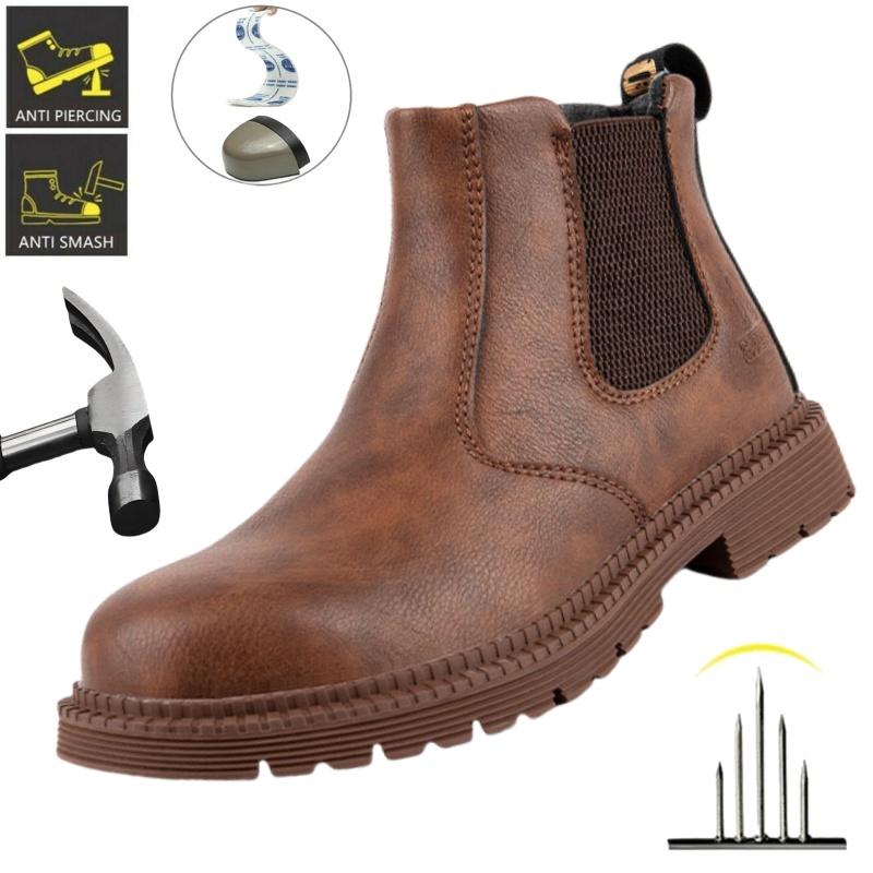 Waterproof Leather Work Safety Shoes,Labor Shoes With Steel Toe Smash-proof,Men Working Shoes Non-slip Lightweight Safety Boots