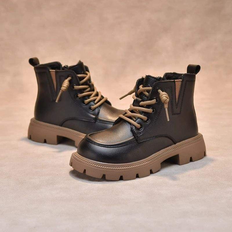 Girls Martin Girls Fleece Boots Autumn and Winter New Foreign Style Girls Single Boots Soft Sole Fleece Short Boots Boys Leather Boots