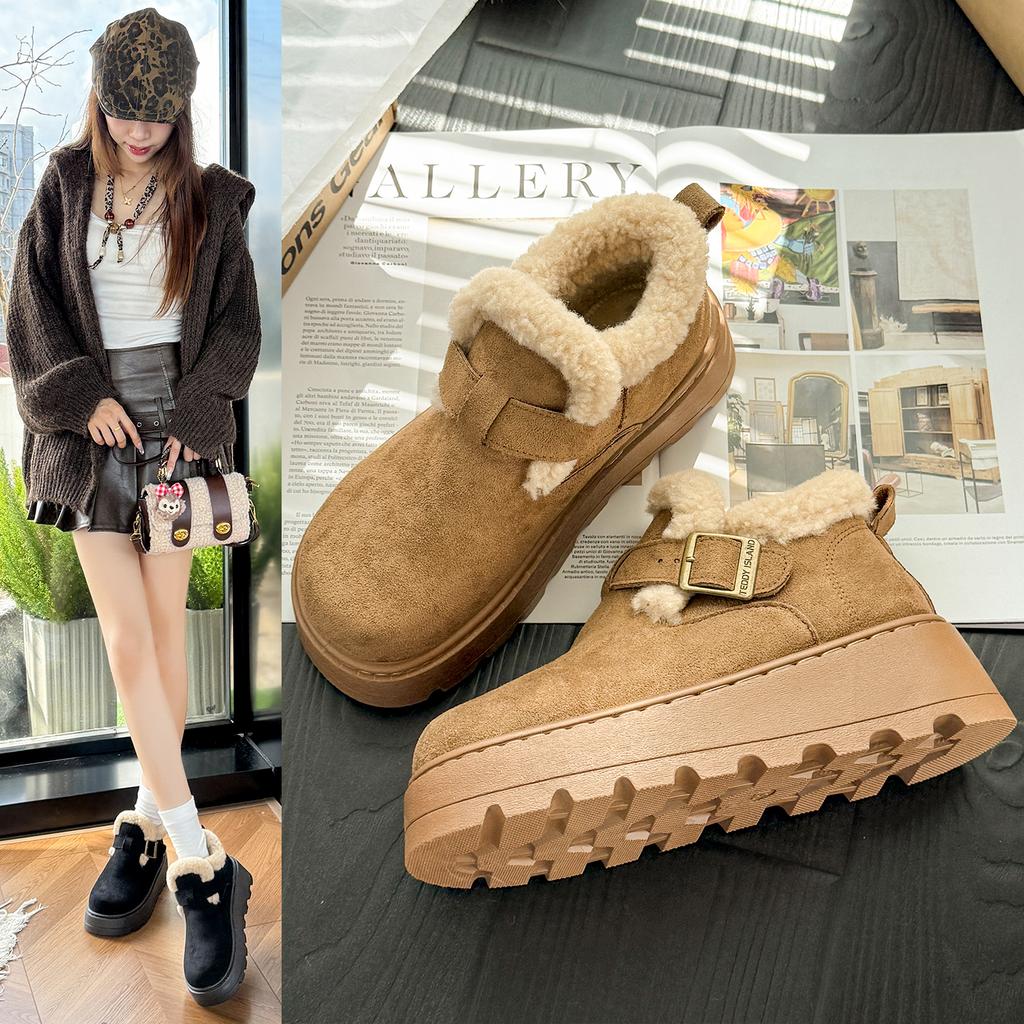 Dámské sněhule na platformě z umělého semiše podzim zima zateplené plyšové kotníkové boty mujer protiskluzová silná podrážka bavlnou polstrované boty 40