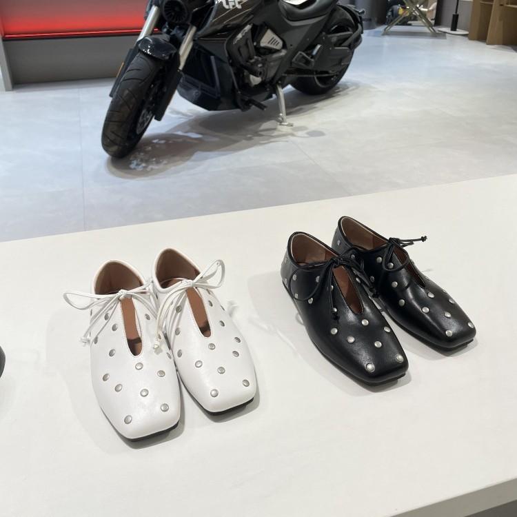 Sheepskin version~ early spring and summer new round nail tether leather shoes retro versatile flat leather temperament French single shoes