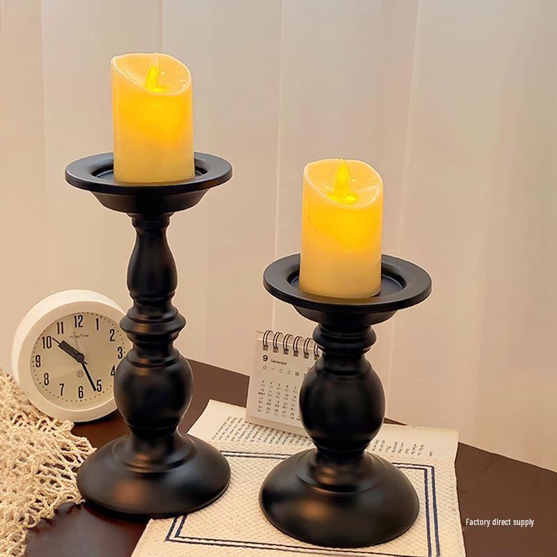 Black Roman Column Candlestick Ornament for Bedroom Table Decor