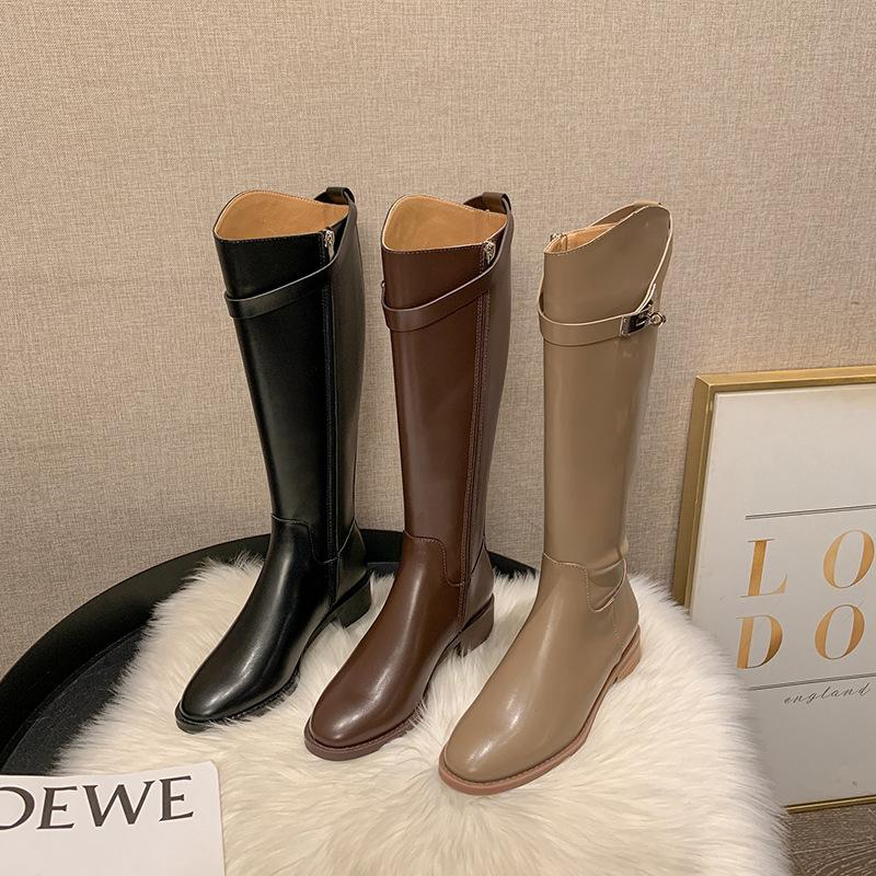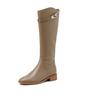 Nové dámské boty Nové dlouhé boty, ale kozačky nad koleno Podzimní a zimní rovné boty Hrubý podpatek přezka rytířský