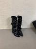Western Cowboy Boots Pleated Pile Pile Knight Boots Punk Thick Heel Pointed Pants Boots Belt Buckle Boots