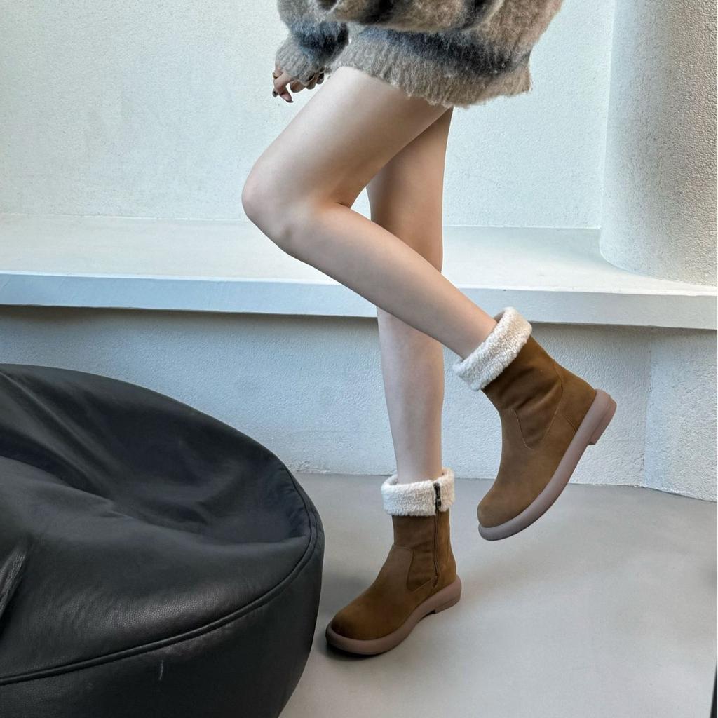 Thick-soled matte leather snow boots women's shoes 2025 new autumn and winter piled thickened cotton shoes warm fluffy boots short boots