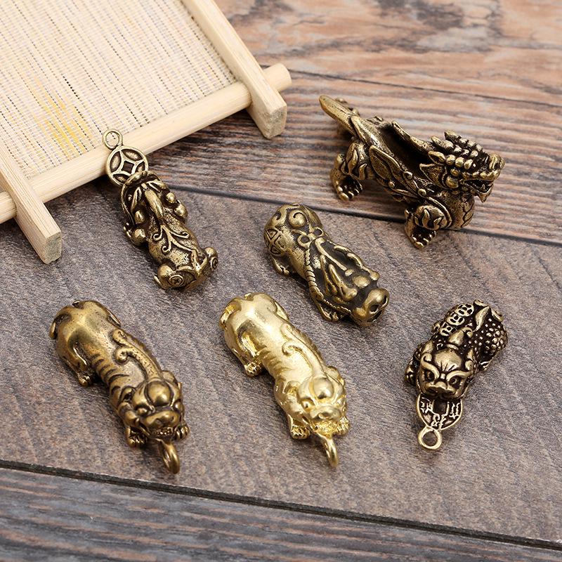 Vintage Brass Pixiu and Kirin Pendant Keychain for Men and Women