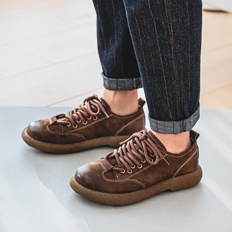 British Style Men Genuine Leather Oxford Shoes Outdoor Casual Leather Thick Bottom Walking Shoes New Antiskid Flat Designer Shoe