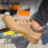 Oulylan Men Wear-resistant Work Shoes Outdoor Thick Sole Antiskid Sneakers Steel Toe Anti Puncture Safety Boot Large Sizes To 46