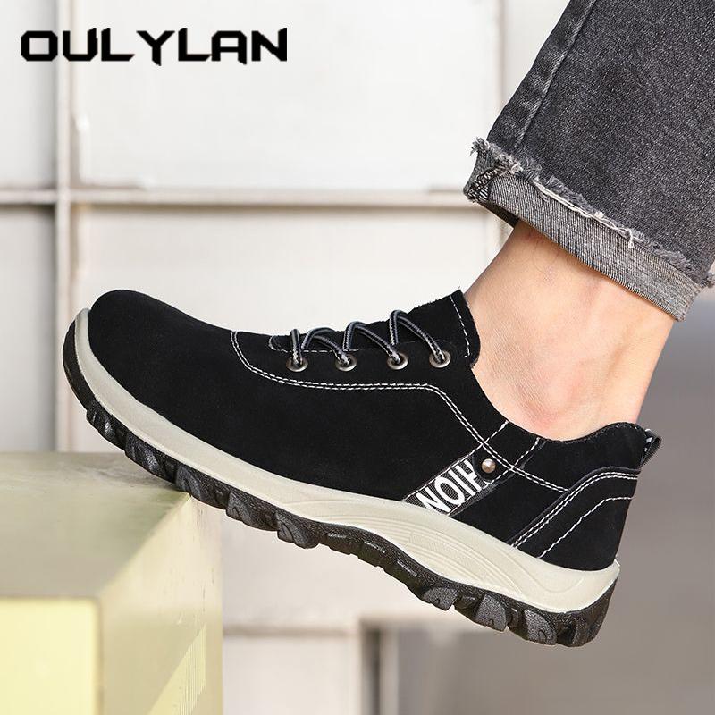 Oulylan Male Puncture-Proof Work Shoes Breathable Lace Up Safety Boots Non-slip Protective Footwear Men Steel Toe Labor Shoes