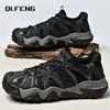 Men Outdoor Travel Hiking Mountaineering Shoes Large Genuine Leather High Top Casual Shoes Anti Slip Wear-Resistant Sneaker