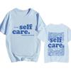 Men's self care pattern printed 100% pure cotton short-sleeved T-shirt Heavy spiritual casual hip-hop streetwear