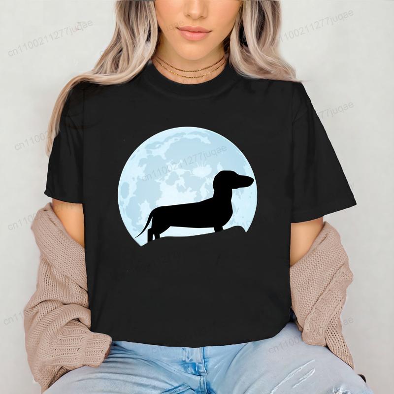 Moon Dachshund T Shirt for Men Women O-neck Short Sleeve Streetwear Wiener Dog Lover Graphic T Shirts Tee Tops Clothing Gift