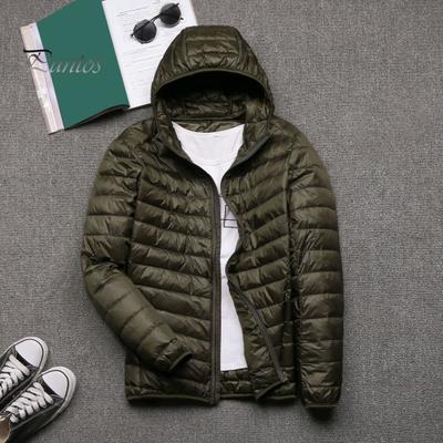 Pánská bavlněná bunda s kapucí, dlouhý rukáv, jednobarevný péřový kabát s bočními kapsami, zapínání na zip, tenké prošívané zimní oblečení