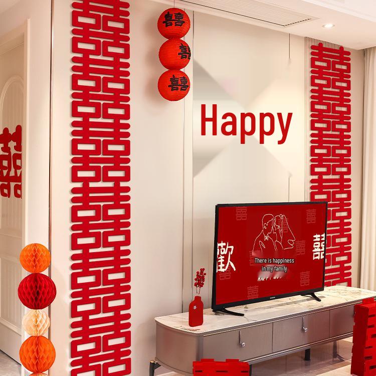 Wedding Ceremony Double Happiness Wall Sticker - Long Strip Simple Design