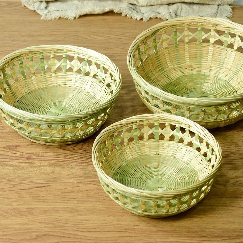 Bamboo Weaving Basket Set: Fruit Basket, Rice Washing Bowl, Snack Plate, Steamed Bun Holder, Storage Basket, Rice Sieve, Winnowing Tray.