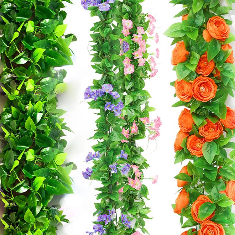 Rattan Pothos Artificial Green Vines: Leaf & Floral Decoration for Pipes and Air Conditioners