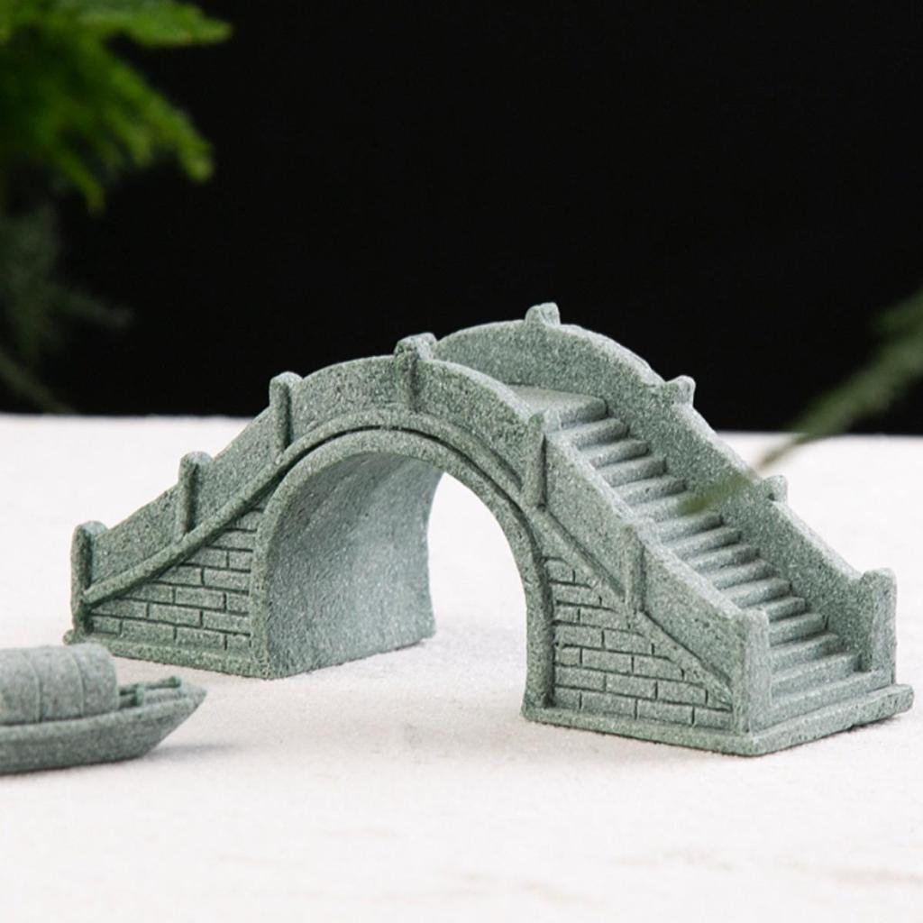 Pebble Bridge Small Boat Ornament: Miniature Water Bonsai Rockery Decoration for Floral Landscapes.
