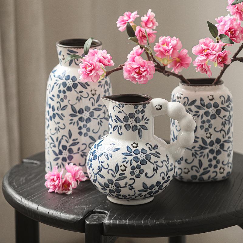 French-Chinese Ice Crackle Blue & White Ceramic Vase: Entrance & Living Room Decor