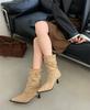Fashion fine boots 2025 autumn and winter thin strap pointed suede thin heel high boots but knee high heel boots women's shoes